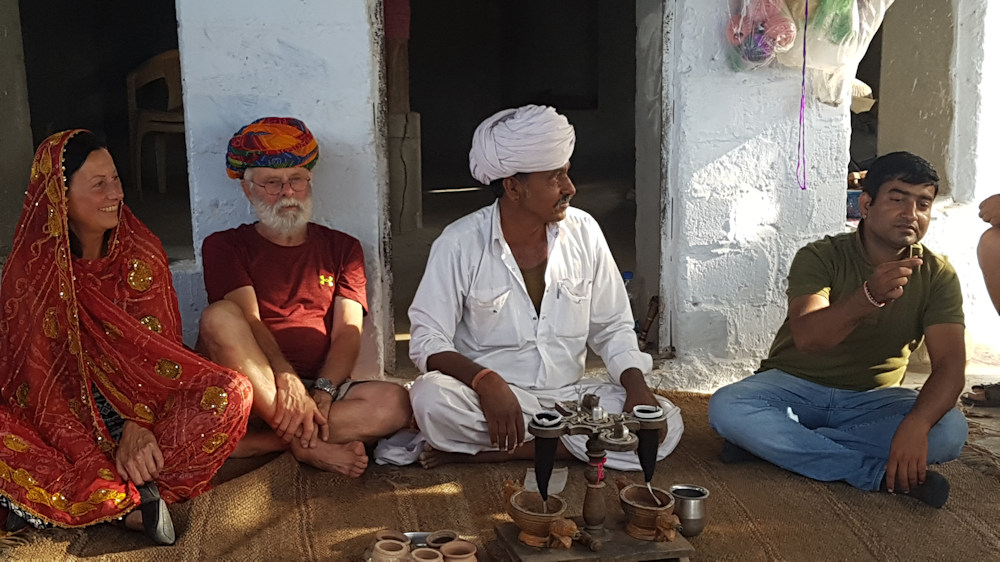 Der Hausherr führt eine "Opium-Show" durch. Uns soll weisgemacht werden, wie die Bishnoi Opium "trinken" und Rauchen.