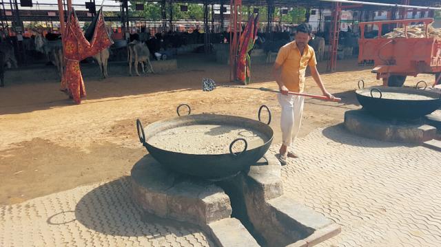 Es wird aber auch Hirsebrei gekocht für die Kühe.