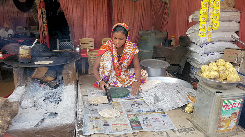 Das knödelförmige fettgebackene Brot rechts heißt Bati.
