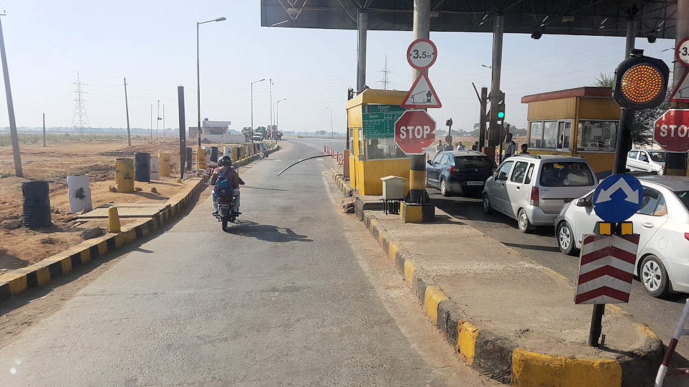 Mautstation auf der Fahrt nach Ranthambore. Man beachte die Schranke.