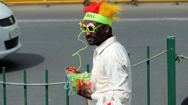 Sonnenbrille mit integrierter Wasserpistole für das Holi-Fest (Farbenfest).