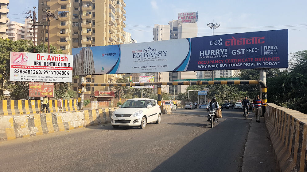 Hier, in einem Außenbezirk von Delhi, war für uns auf dieser Straße heute Schluß....