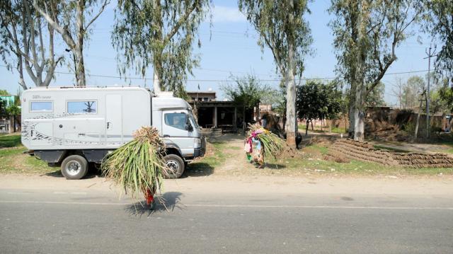 Rast beim Bauern. Die Scheiben sind getrockneter Kuhdung zum Kochen.