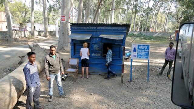 Für die Brücke nach Nepal müssen 55 Rupien (0,70 €) hier entrichtet werden.