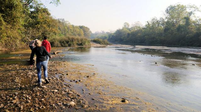 Wir sind heute zu Fuß unterwegs.