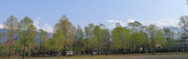 Blick vom Stellplatz auf die Annapurna Gruppe am Morgen.