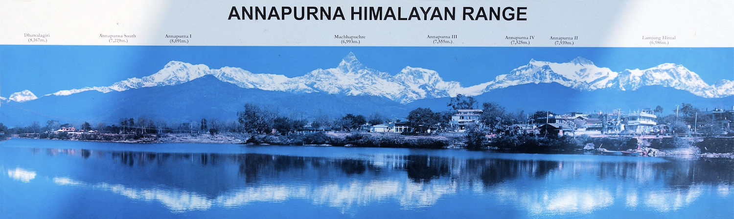 aber so, wie wir es gerne gehabt hätten (Fotopanorama abfotografiert in Pokhara) war heute nicht drin.