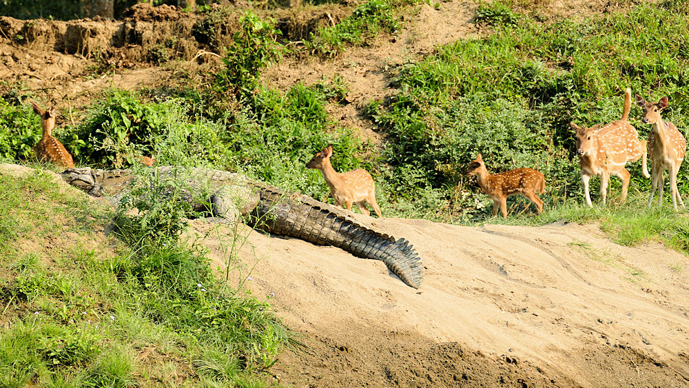 Die Rehe hatten null Respekt vor dem Krokodil.