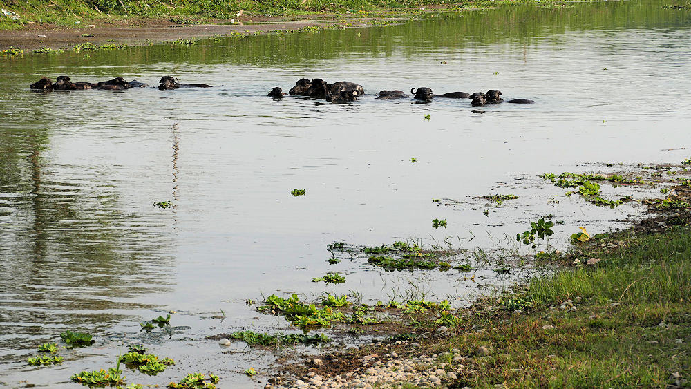 Die Wasserbüffel waren bereits außerhalb des Nationalparks. Ob das die Krokodile auch wissen?