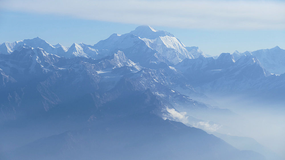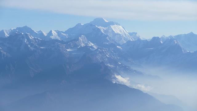 Das ist er, von einer kleinen Wolke an der Spitze etwas verhüllt: der Mount Everest.