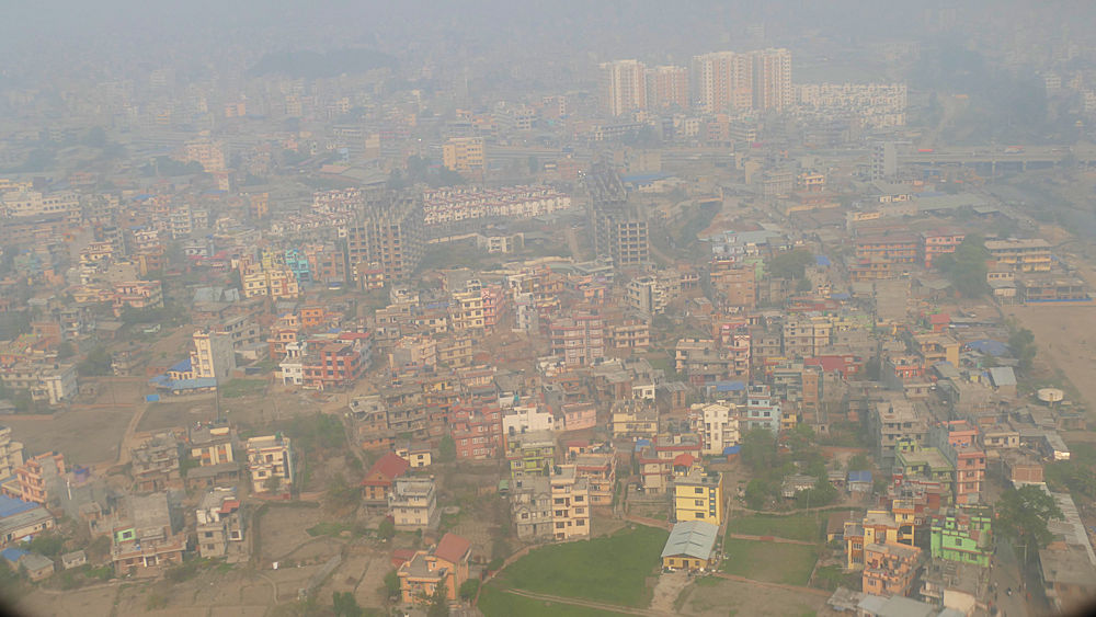 Dann sind wir wieder zurück im Smog von Kathmandu.