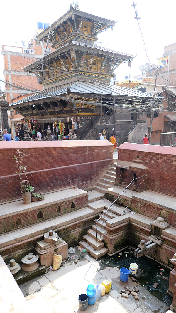 Solche Stufenbrunnen sind heute noch für die Wasserversorgung in Betrieb. Das Rinnsal ist erbärmlich und es wird Stunden dauern, die Gefäße zu füllen.
