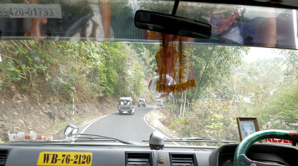 Jeepfahrt von Shiliguri (100 m Meereshöhe) nach Darjeeling (2.185 m Meereshöhe).