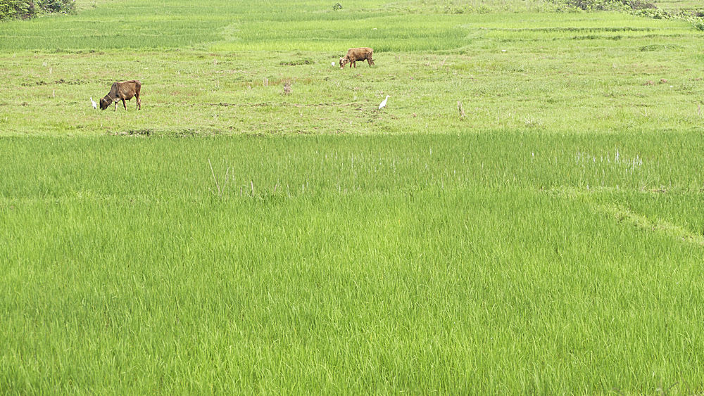 Der Unterschied zu Anfang Januar: Alle ist in frischem Grün, der Reis...