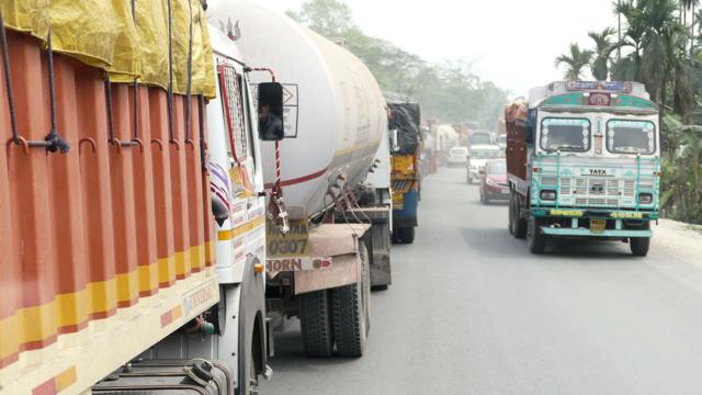 Um vorwärts zu kommen, müssen wir indisch fahren: an der Stauschlange auf der Gegenfahrbahn vorbei.