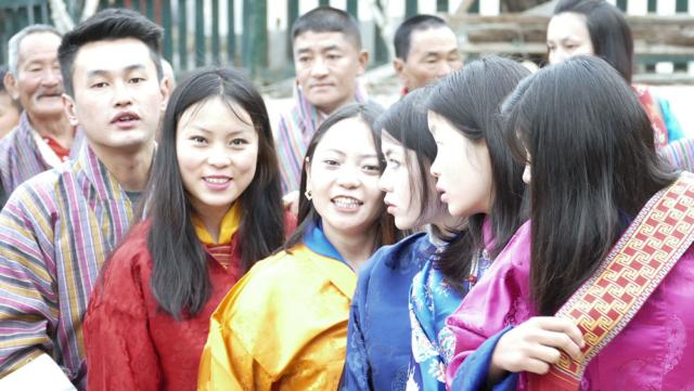Die Bhutaner stehen an zum berühren des Tuchs.