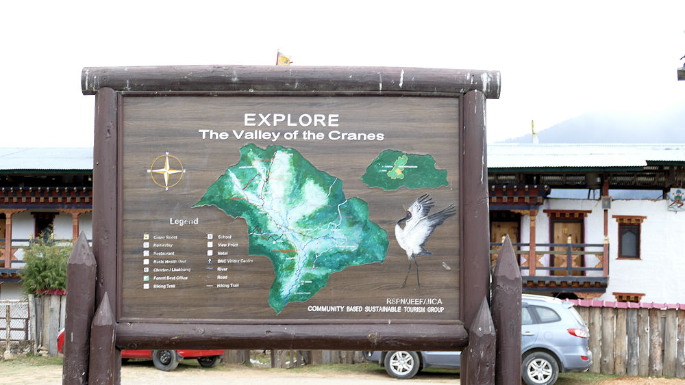 Im Phobjikha Tal verbringen die tibetansichen Schwarzhalskraniche den Winter. Sie sind leider schon weg.