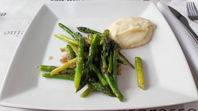 Gestern gab es bereits Grünen Spargel mit Kartoffelpüree.