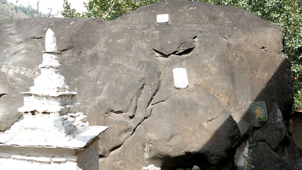 An dieser Stelle hat Guru Rinpoche meditiert und auch in diesem Stein ein paar Tage verbracht.