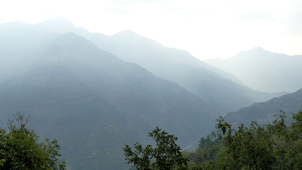 Früh am Morgen der letzte Blick auf die Berge Bhutans.