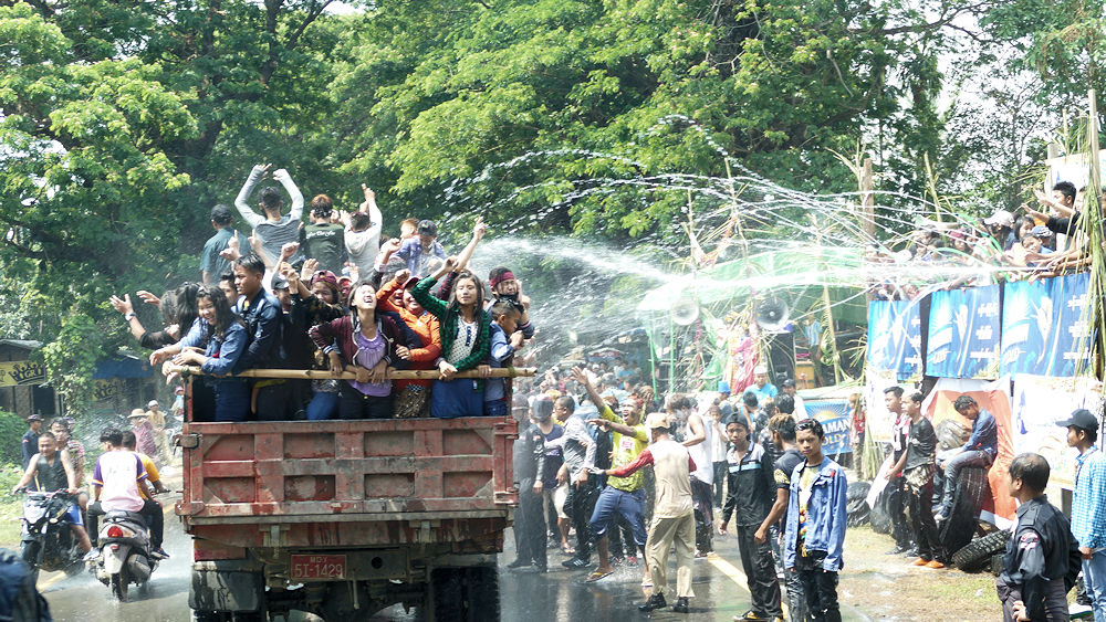 aber Hauptsache sind die Wasserschlachten... (Alles vom Fahrerhaus fotografiert, bei geschlossenen Fenstern natürlich)