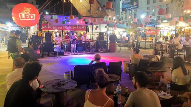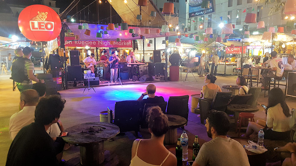 Unser Ausklang bei der Band wurde durch einen Gewitterregen jäh beendet. Leo ist übrigens eine bekannte thailändische Biermarke.