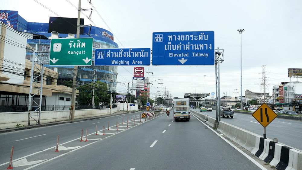Außenbezirk von Bangkok, die Polizei (Motorrad) ist dabei.