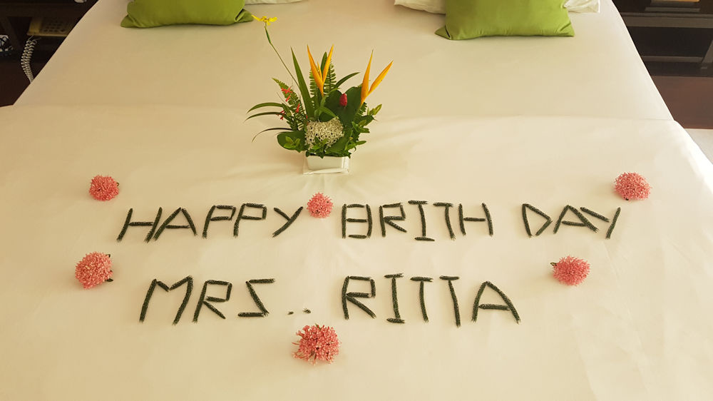 Auch die Zimmermädchen haben sich für Ritas Geburtstag ins Zeug gelegt, wenn es auch mit der Rechtschreibung hapert.