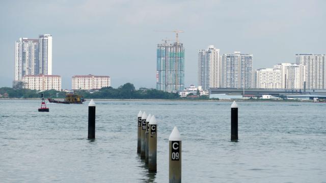 mit Blick aufs Festland.