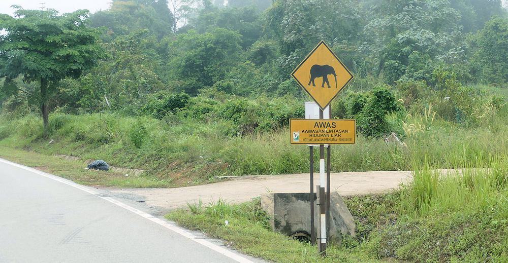 Beim Verlassen des Nationalpark-Gebietes wird nochmal auf die wilden Elefanten hingewiesen.