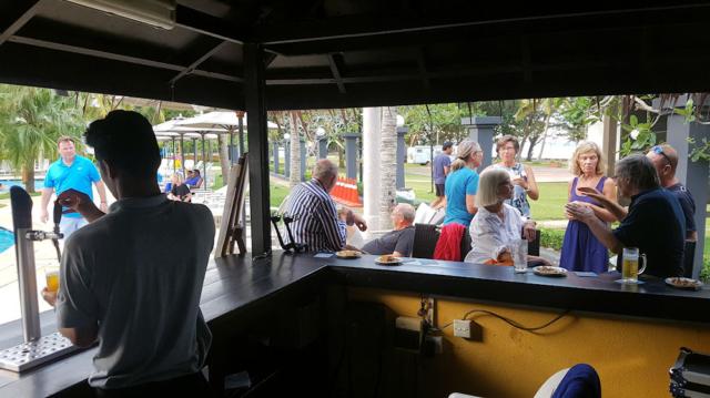 Am Abend: Umtrunk zur Verabschiedung von Toni und Margi an der Poolbar.
