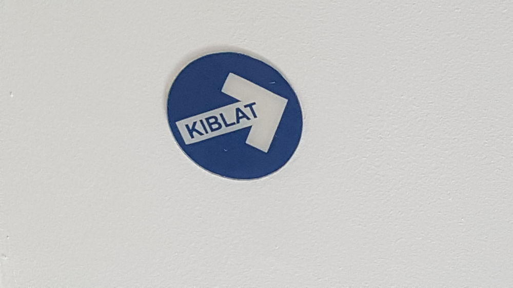 An der Zimmerdecke ist die Richtung nach Mekka gekennzeichnet.