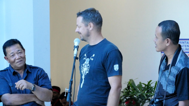 und Reiseleiter Jörn bedankt sich. Rechts unser indonesischer Guide Zufnal.