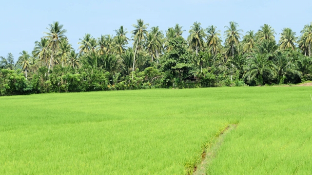 Leuchtend grüner junger Reis.