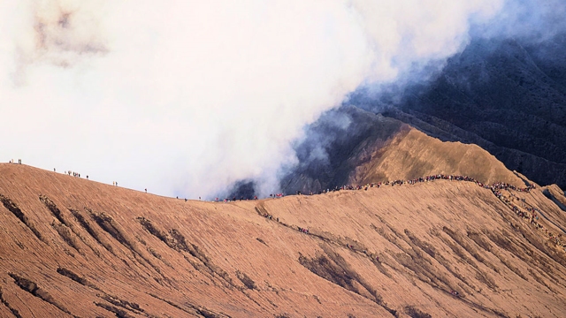 Am Kraterrand sieht man mit dem Teleobjektiv schon viele stehen.