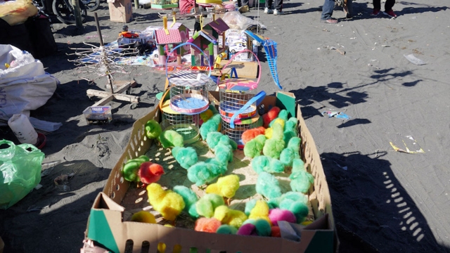 Eigenartige Opfergaben werden angeboten: gefärbte Küken.