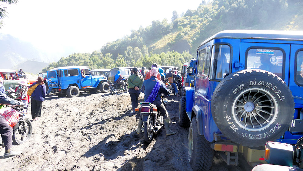 denn hunderte anderer Jeeps wollen auch raus aus dem Krater.