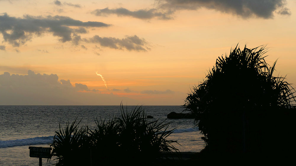 Von 60 km Entfernung lässt sich das abendliche Spektakel des Vulkans Atung gefahrlos beobachten.