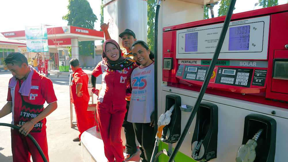 Wir tankten SOLAR NON SUBSIDI (ohne Zusätze). Es gibt auch SOLAR, Bio SOLAR, DEXLIGHT und PERMINA DEX. Das sind alles Dieselsorten. Letztere beiden (es sind die Besseren) gibt es nicht in Sumbawa. Auch gibt es nicht an allen Tankstellen Diesel bzw. dieser ist gerade ausgegangen. Man kann da schon den Überblick verlieren und Benzin tanken. |