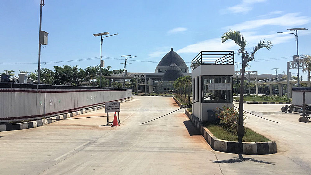 Einfahrt zum supermodernen indonesischen Grenzposten. Nur die Schranken sind noch nicht geliefert. Aber es gibt ja lange Bambusstangen.