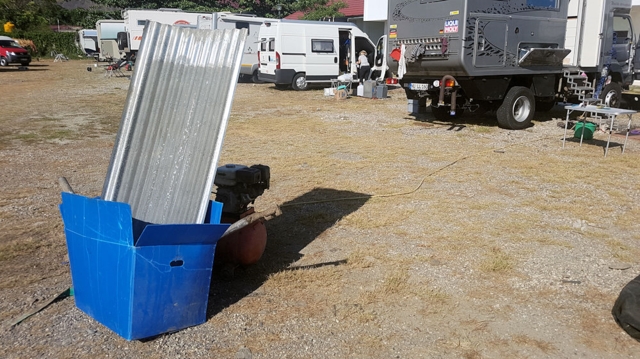 Sogar dem Kompressor ist zu heiß, wir brauchen ihn für die Reinigungspistole.