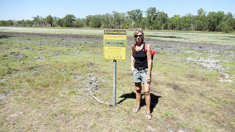 Potentiell könnten in jedem Gewässer Krokodile sein. Deshalb überall Warnschilder.