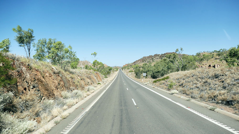 Immerhin ist die Landschaft im westlichen Queensland nicht ganz so eintönig.
