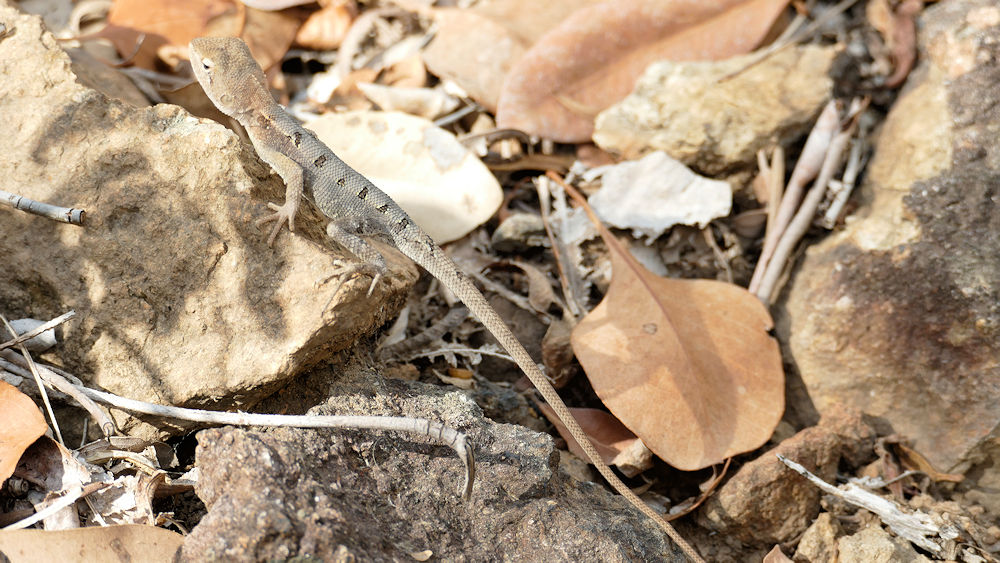 Gut getarnte kleine Echse.