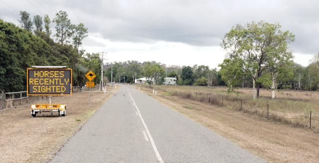 Bei der Rückfahrt vom Campground zum Bruce Highway wird sogar vor wilden Pferden gewarnt.