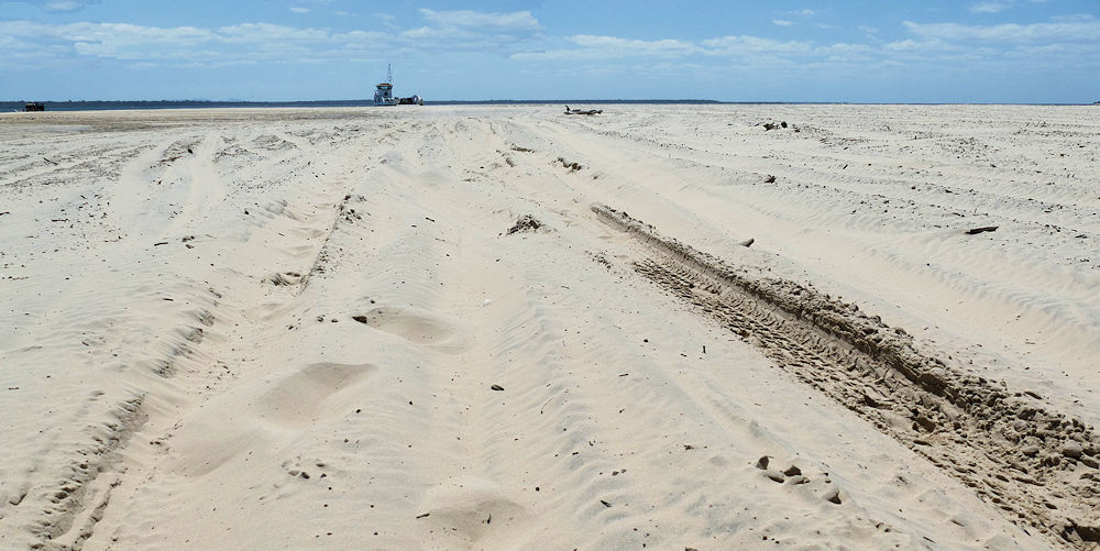 An der Spitze der Halbinsel kann man mit einer Fähre nach Fraser Island übersetzten, wenn man die Sandpassage schafft.