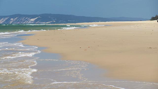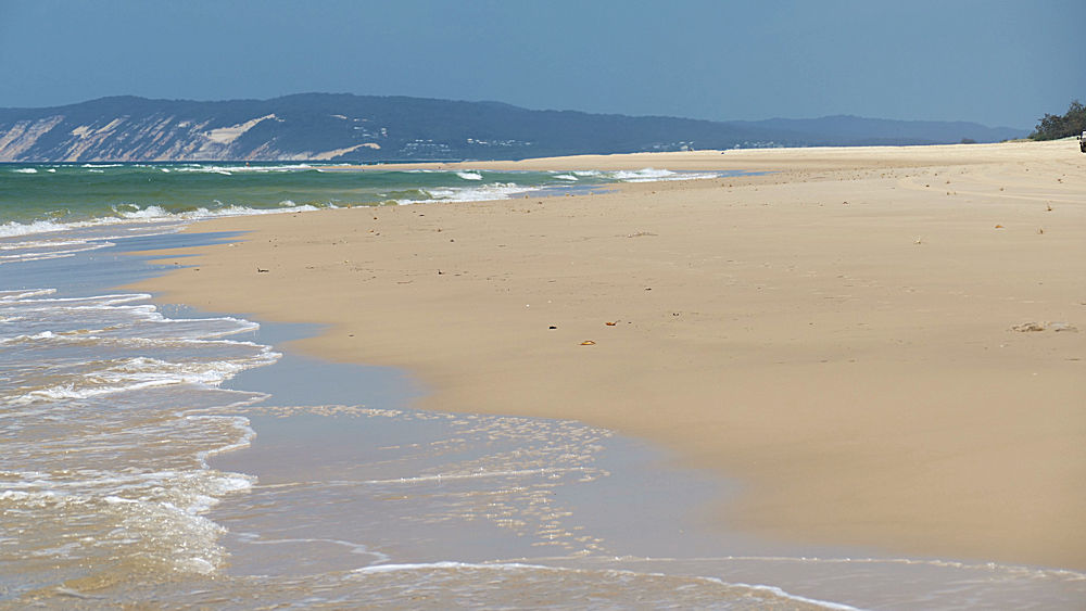 Auf der Pazifikseite der Halbinsel erstreckt sich der Strand auf viele km bis zu den großen Sanddünen am Horizont.