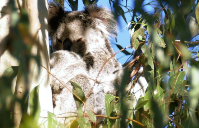 Am Abend sind wir nochmal "zum Baum" gegangen. Die Koalas waren erwartungsgemäß noch da, aber jetzt zeigte sich das Alttier vorteilhaft.