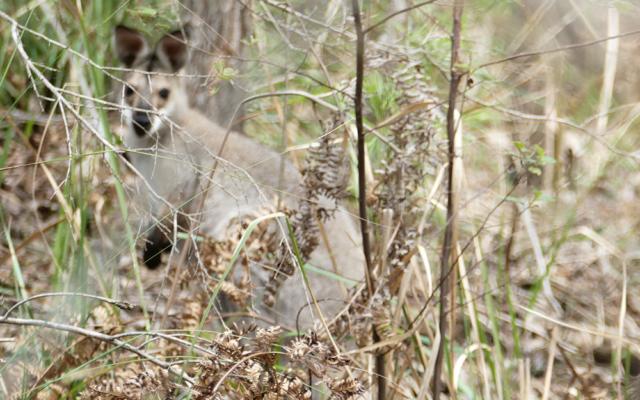 Unerwartet entdecken wir im Unterholz ein Känguru, das sich aber gleich wieder verzieht.