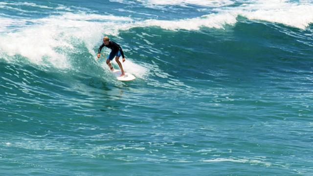 die Surfer am Strand. Hier, wo kein Barrier Reef vorgelagert ist, sind die Wellen des Pazifiks stärker.